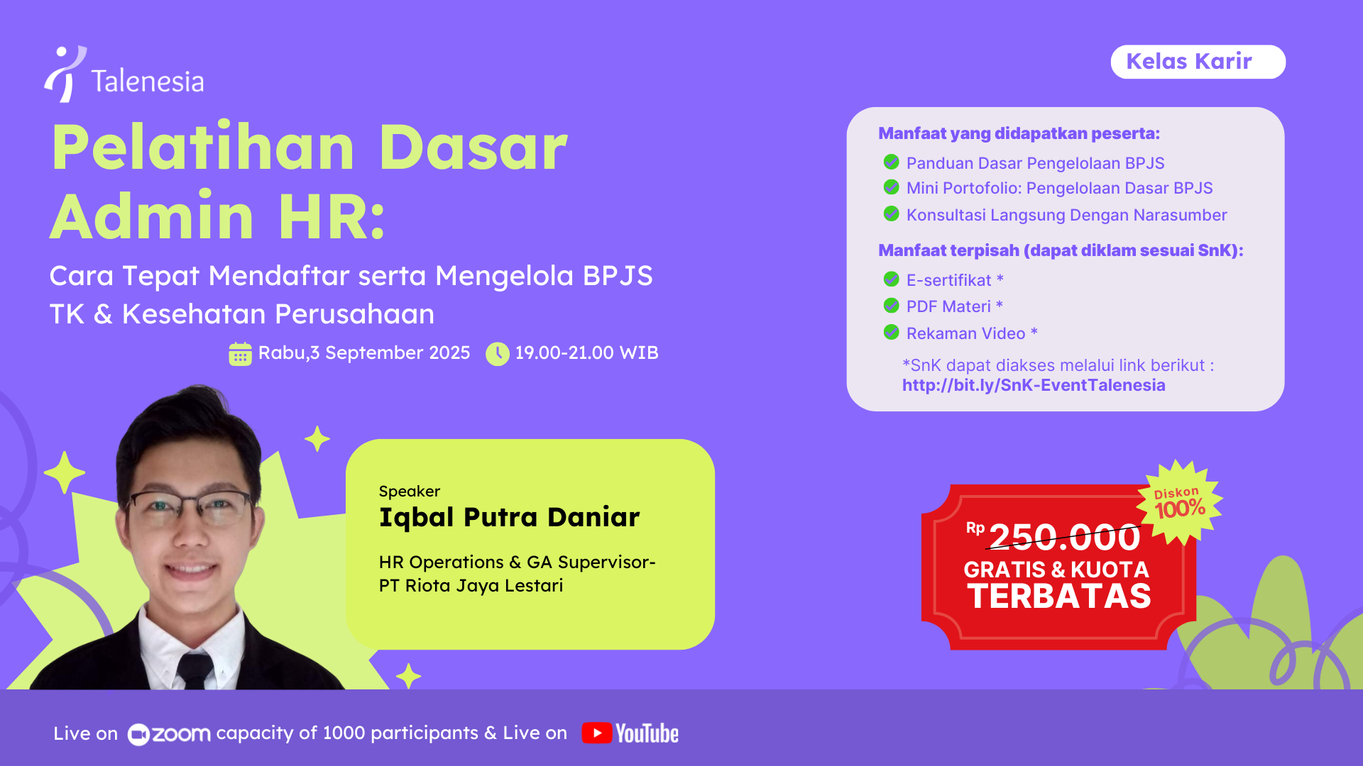 Pelatihan Dasar Admin HR: Cara Tepat Mendaftar serta Mengelola BPJS TK & Kesehatan Perusahaan