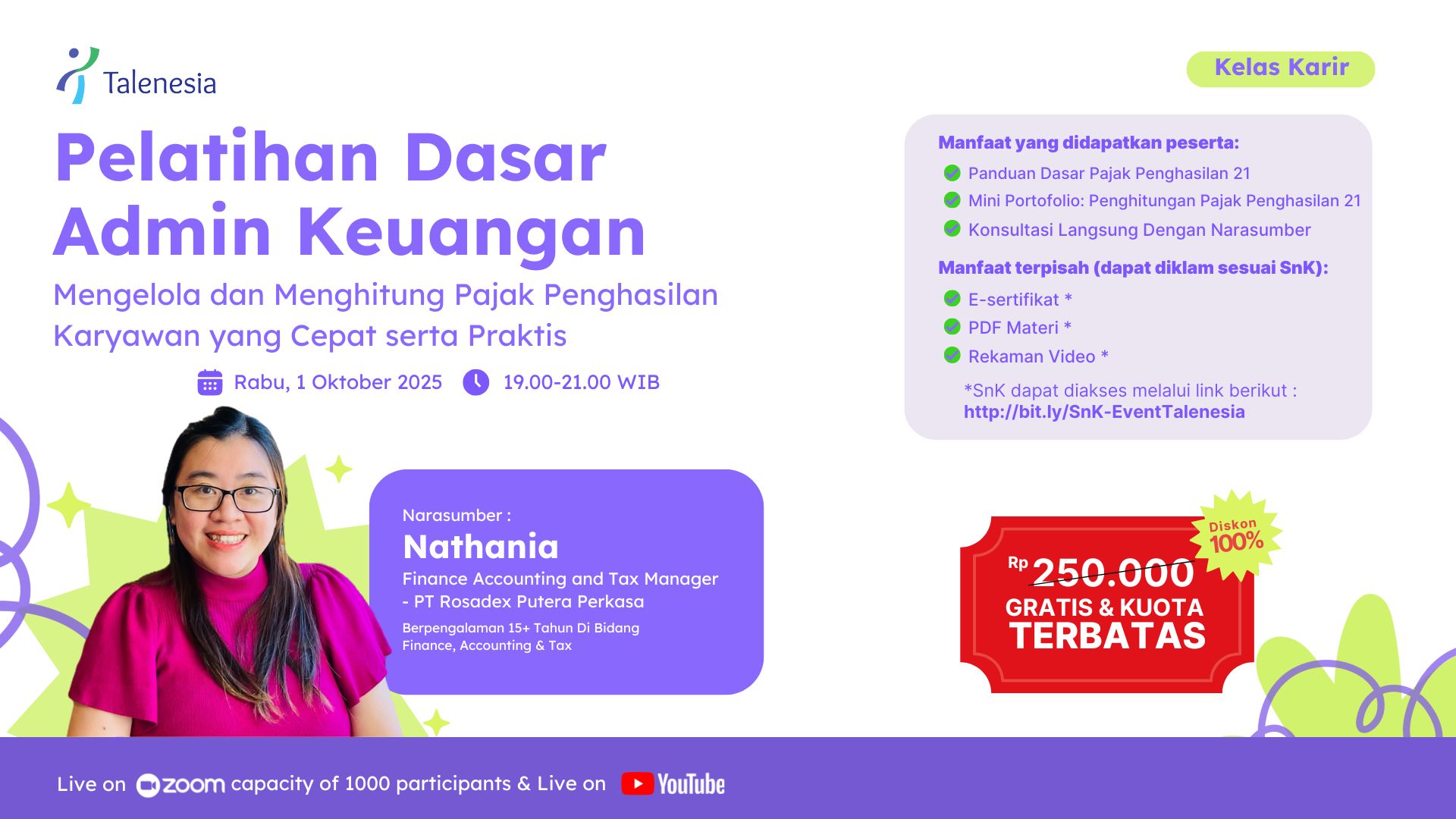 Pelatihan Dasar Admin Keuangan: Mengelola & Menghitung Pajak Penghasilan Karyawan yang Cepat serta Praktis